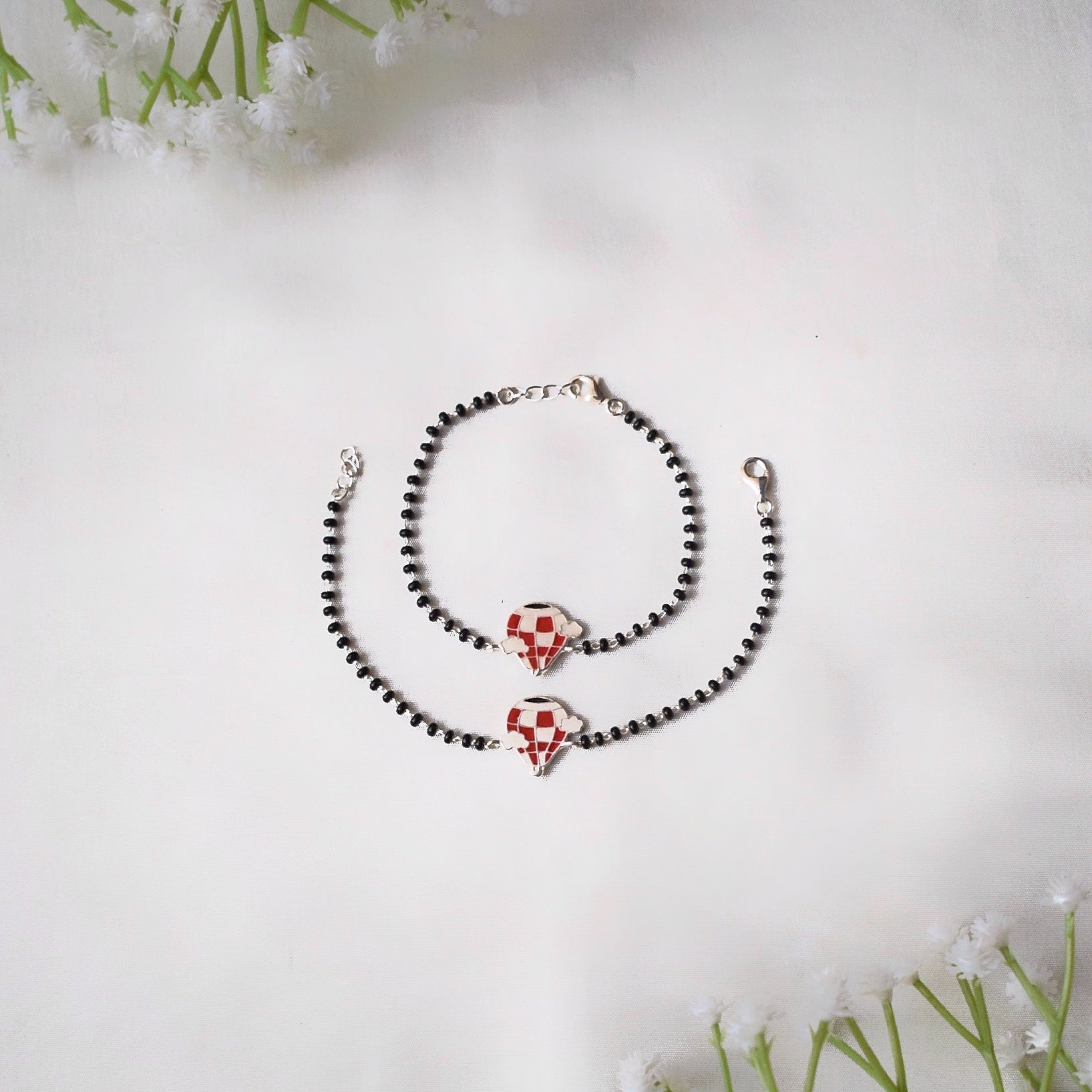 Let your child’s imagination take flight with the FlyTales Nazariya Anklet Pair, lovingly handcrafted in pure 925 silver. Featuring a whimsical balloon charm and traditional black beads, these anklets are a sweet symbol of dreams, joy, and protection — perfect for little explorers beginning their journey through life.