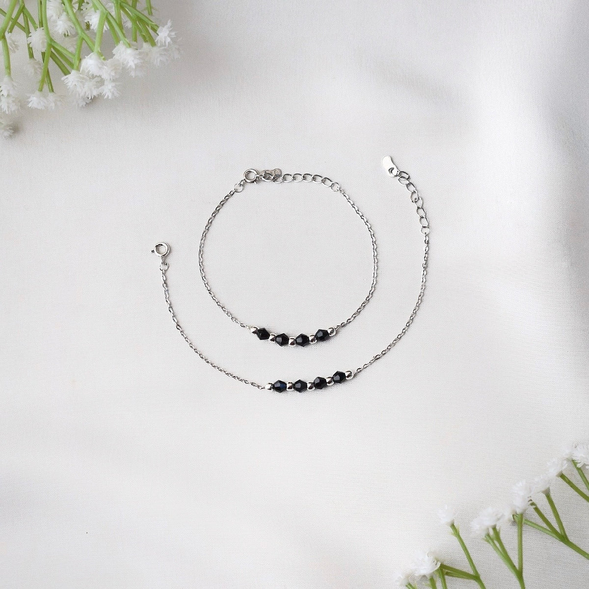 NoorBeads Designer Black Beads Anklet – 925 Silver for Kids