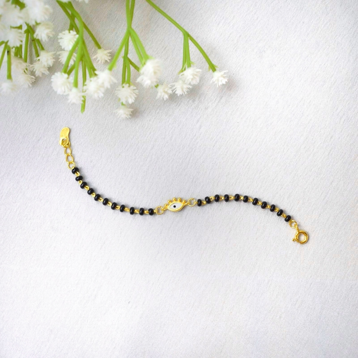 Elevate your little one’s style and protection with our Designer Evil Eye Charm Nazariya Bracelet. Handcrafted from premium 925 silver and also available in a luxurious 18K gold-plated finish, this designer Nazariya features an intricately designed evil eye charm paired with protective black beads. A sophisticated symbol of protection and good fortune, it’s the perfect blend of style, meaning, and safety for your child.