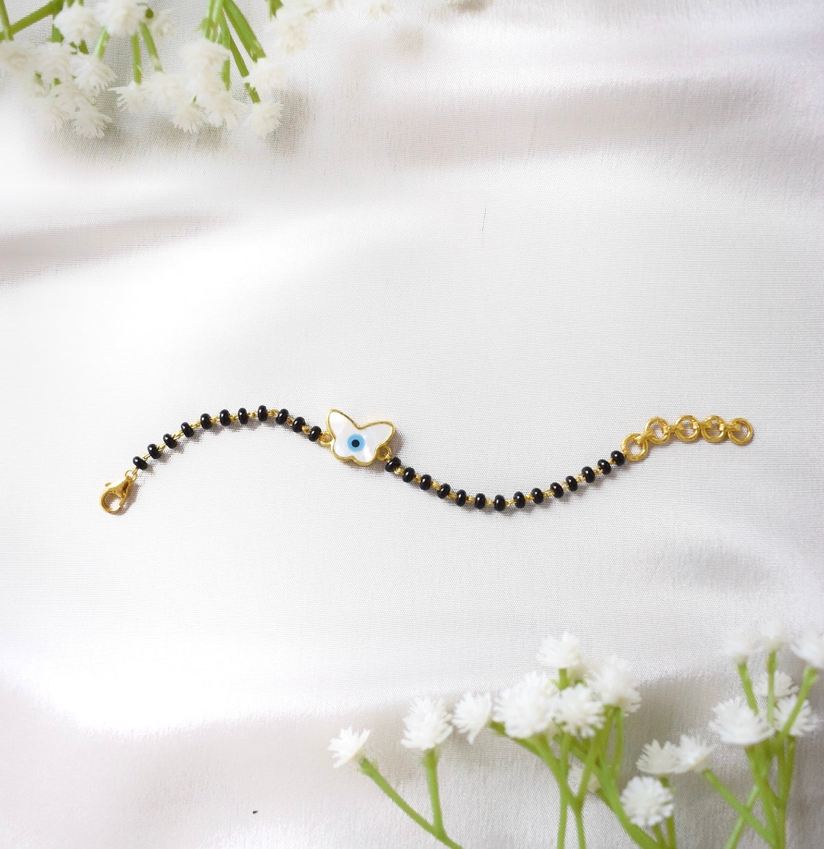 FlyGuard Nazariya – Butterfly & Evil Eye Protection with Black Beads