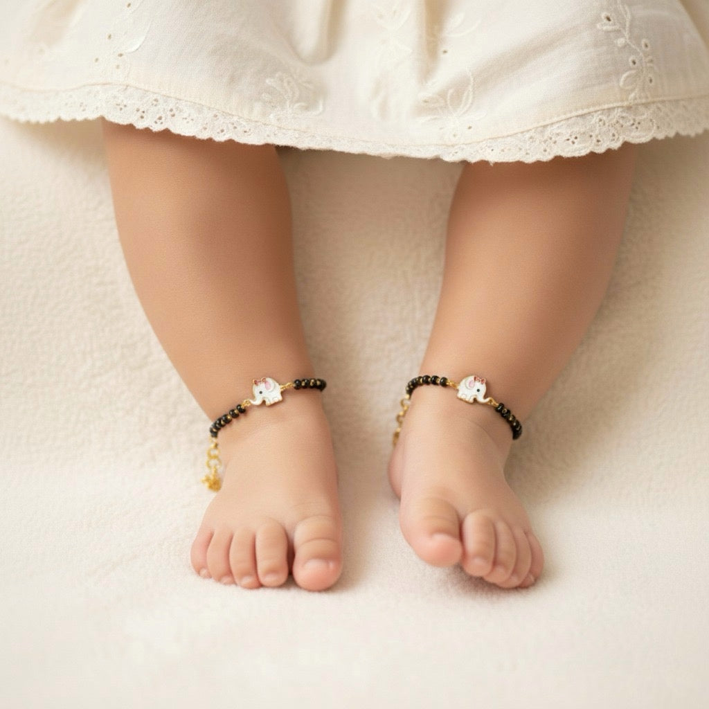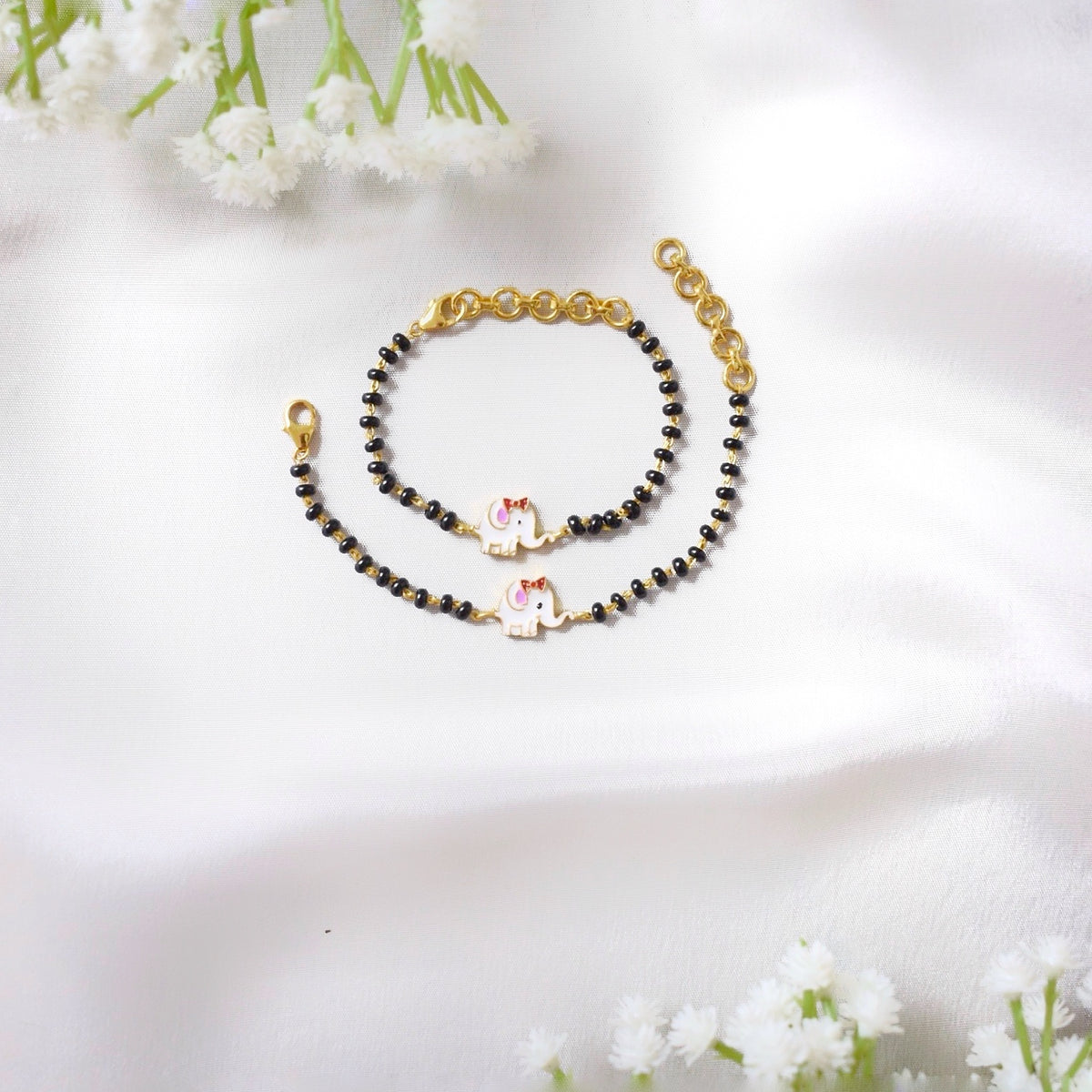 Bring blessings of strength, wisdom, and protection to your child with the LuckyTusks Nazariya. Featuring an adorable elephant charm crafted in pure 925 silver, combined with traditional black beads, this nazariya is both playful and meaningful — a perfect balance of tradition and modern keepsake design.
