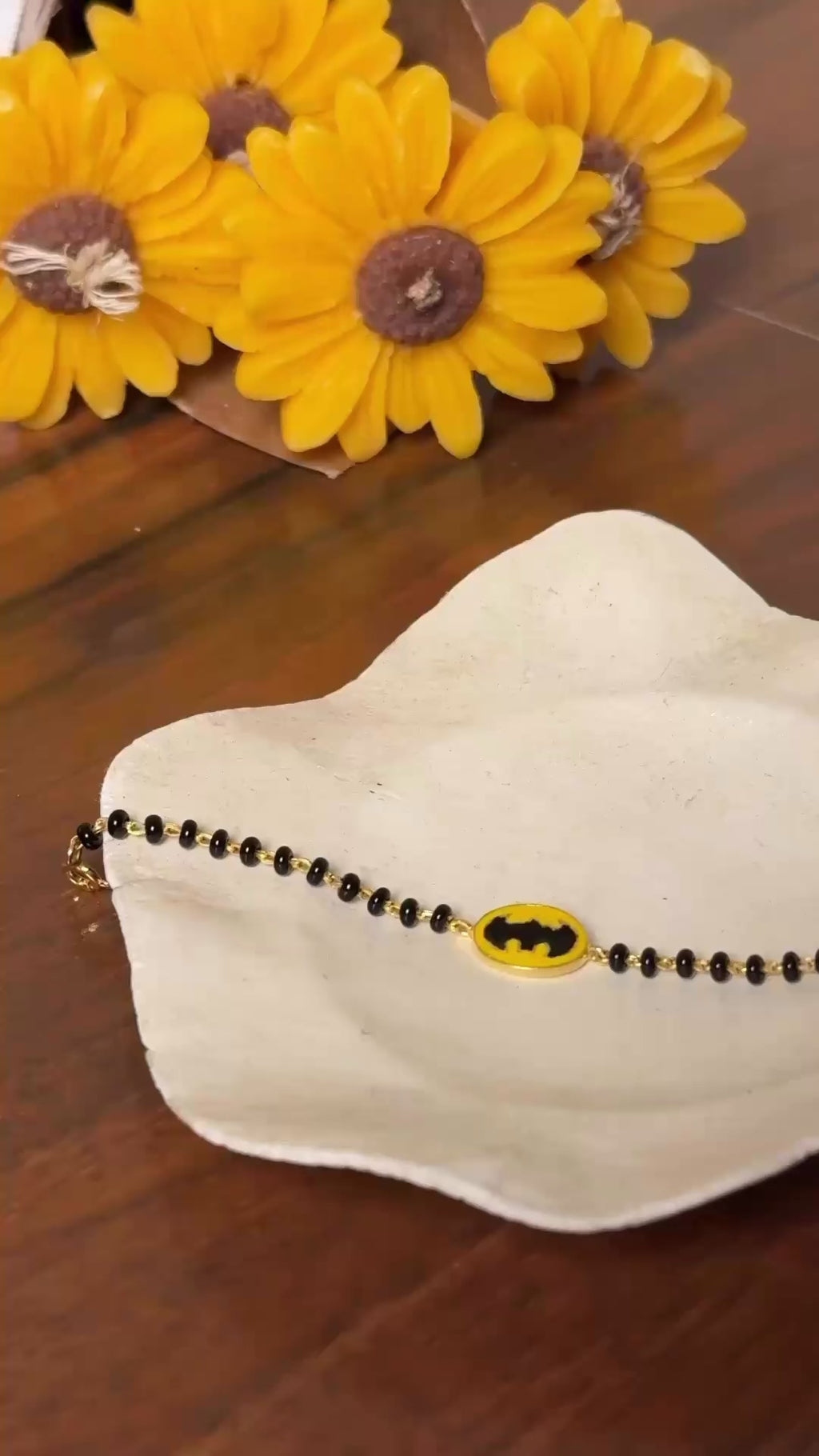 The DarkKnight Nazariya is inspired by the spirit of courage and protection — just like every little hero who shines in their own way. Handcrafted in pure 925 silver, this nazariya features a striking Batman charm paired with traditional black beads, blending power with purity and style with sentiment.