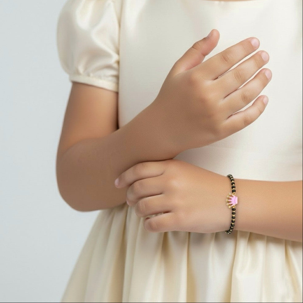 Give your little one a touch of royalty and tradition with the RoyalCrown Nazariya. Featuring a beautifully crafted gold-plated crown charm on pure 925 silver, paired with protective black beads, this nazariya is a perfect blend of elegance, tradition, and love.