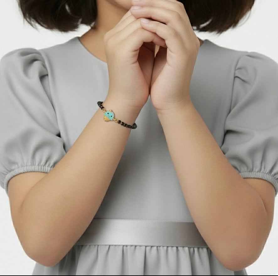 Let your little one indulge in sweetness and charm with the Ice Cream Charm Nazariya Bracelet. Handcrafted in pure 925 silver and also available in a shimmering 18K gold-plated finish, this fun bracelet features a cute ice cream charm paired with protective black beads. A symbol of sweetness and joy, this bracelet keeps your child safe while adding a playful, delicious touch to their jewelry collection.