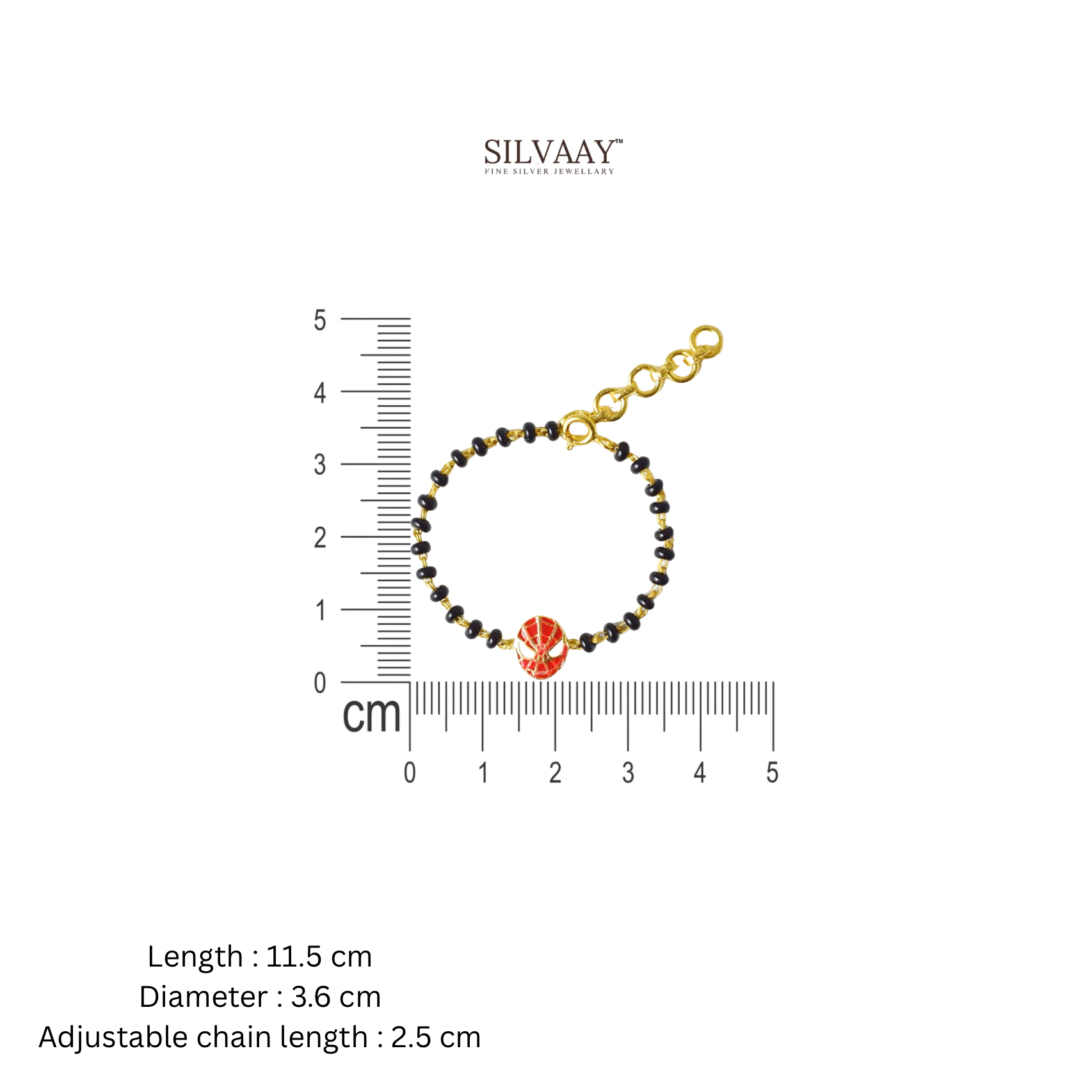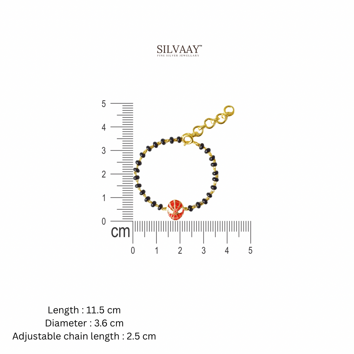SpiderGuard Nazariya – Silver Spiderman Charm Black Beads Bracelet for Kids