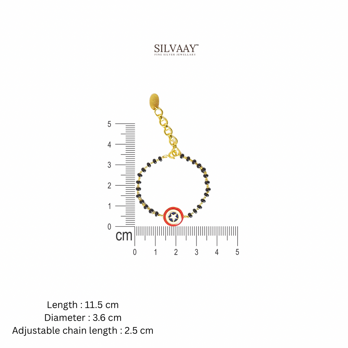 The StarShield Nazariya is crafted to celebrate bravery, protection, and pride — just like the little hero in your life. Featuring a bold Captain America shield charm in pure 925 silver, paired with traditional black beads, this nazariya beautifully combines strength with tradition, making it a perfect keepsake for your child’s journey.