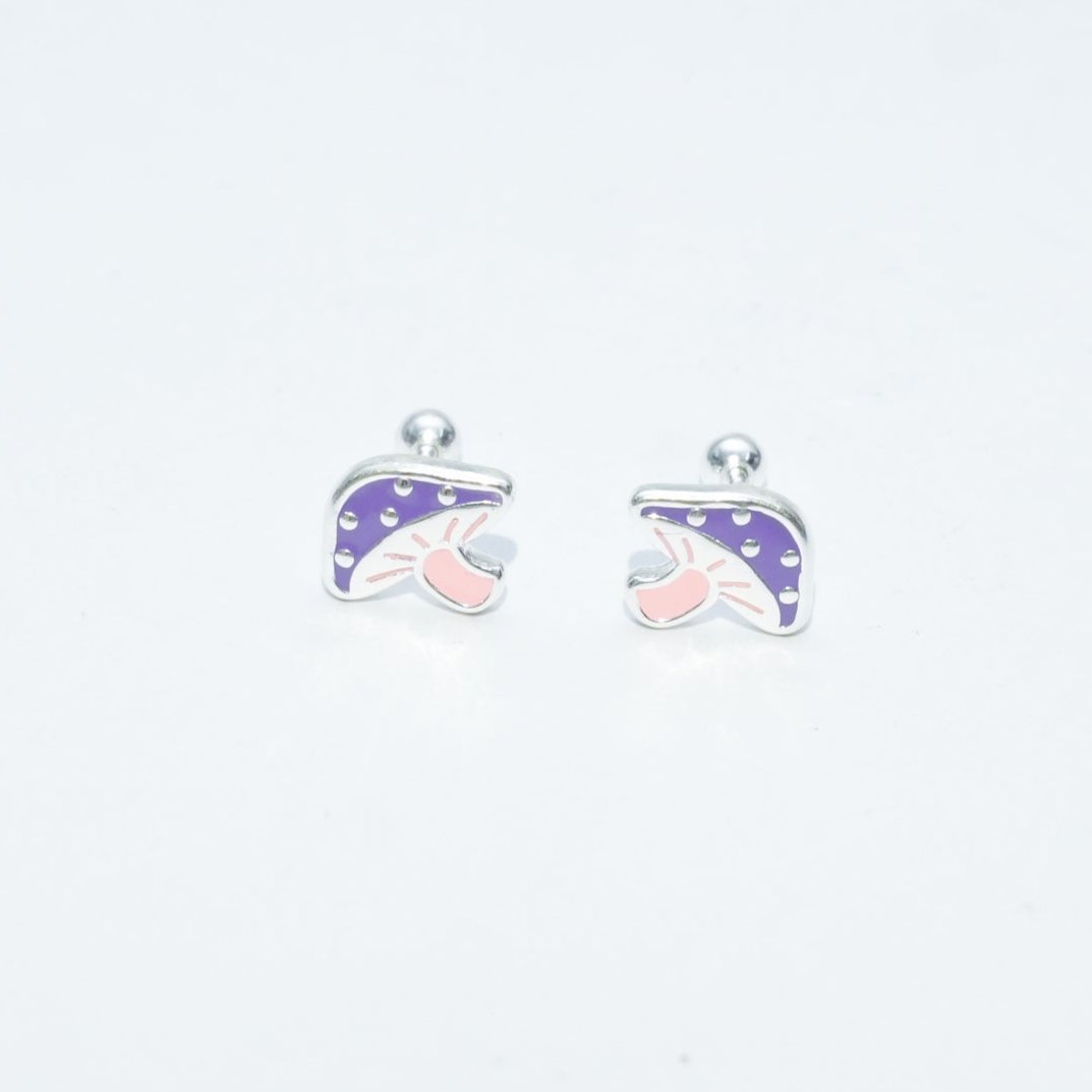 These earrings feature a charming mushroom design with colorful enamel detailing.