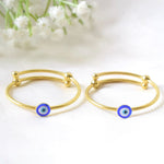 Design: Smooth adjustable bangle with a centered evil eye charm