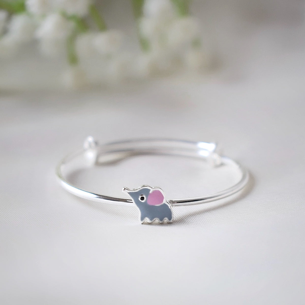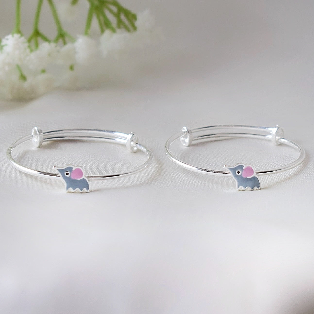 Dumbo Elephant Charm Bangles – Pure 925 Silver with Shining Stones (Set of 2)