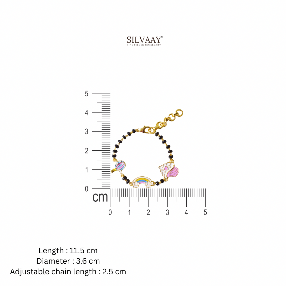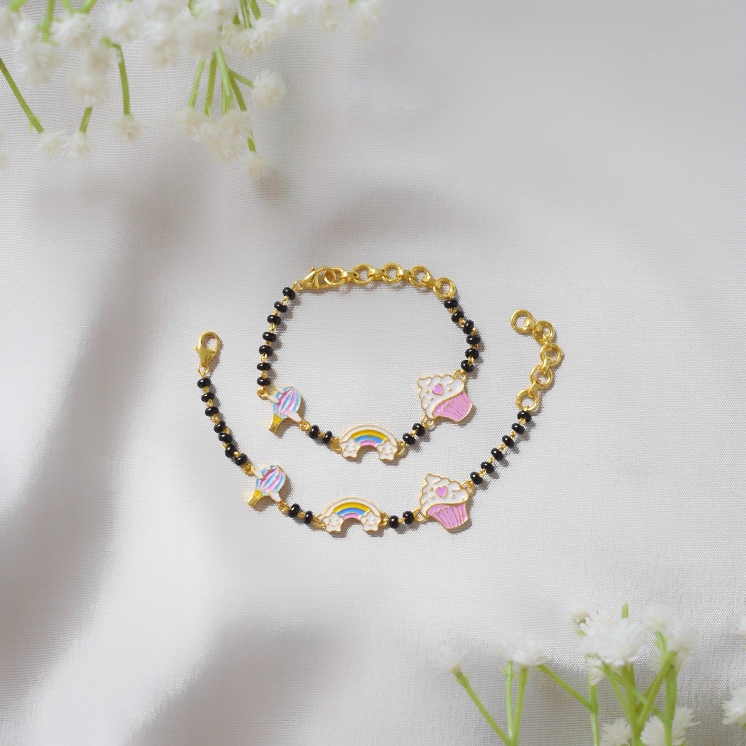 RainbowTreat Nazariya – Balloon, Rainbow & Ice Cream Black Beads Silver Bracelet