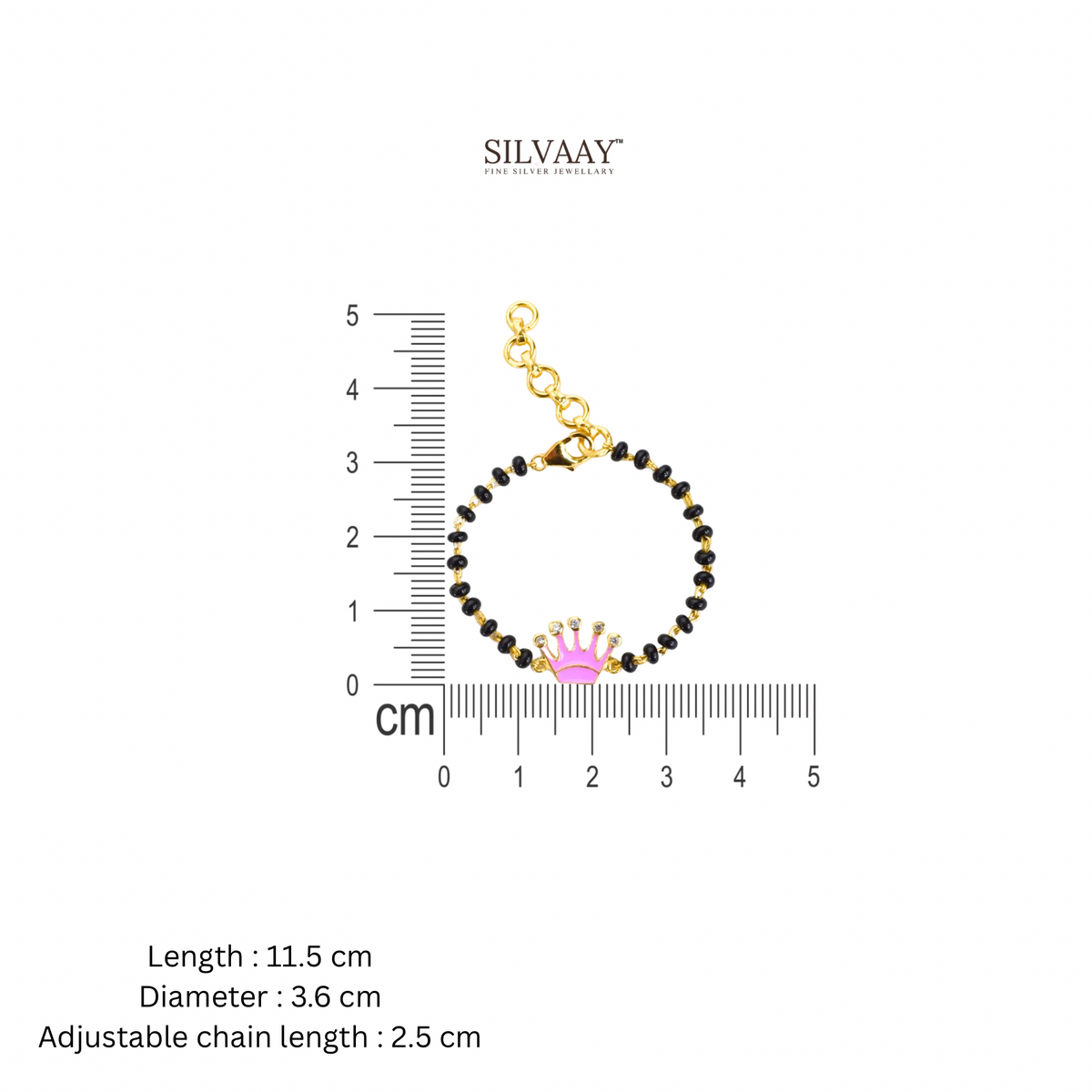 Give your little one a touch of royalty and tradition with the RoyalCrown Nazariya. Featuring a beautifully crafted gold-plated crown charm on pure 925 silver, paired with protective black beads, this nazariya is a perfect blend of elegance, tradition, and love.